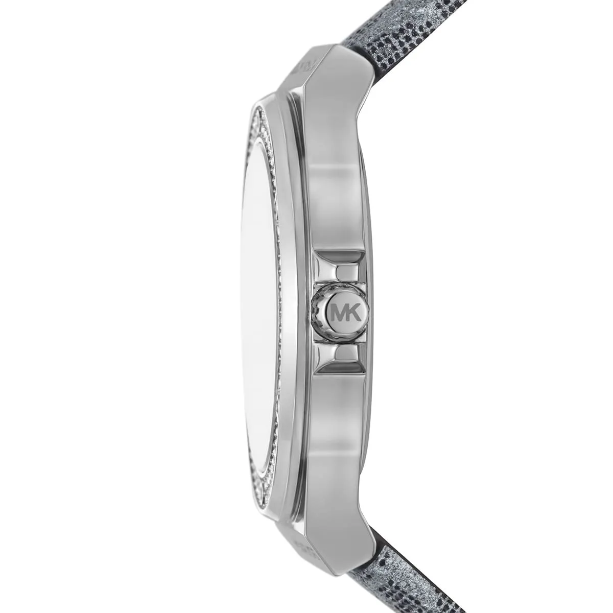Štýlové dámske hodinky Michael Kors MK7309 si zamilujú všetky dámy, ktoré vyhľadávajú kvalitne spracované doplnky. Hodinky sú vyrobené kombináciou odolnej nerezovej ocele a kvalitnej kože v sivočiernej farbe, čo im dodáva nádych elegancie. Okrúhly perleťový ciferník je pokrytý minerálnym sklíčkom, ktorý ho chráni pred vonkajším poškodením. Ciferník je zasadený vo výraznom puzdre, ktoré je lemované jemnými krištálikmi.