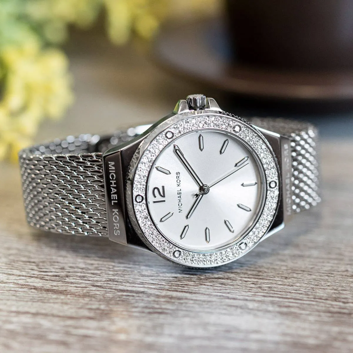 Štýlové dámske hodinky Michael Kors MK7337 si zamilujú všetky dámy, ktoré vyhľadávajú kvalitne spracované doplnky. Hodinky sú vyrobené z odolnej nerezovej ocele v striebornej farbe, čo im dodáva nádych elegancie. Okrúhly ciferník je pokrytý minerálnym sklíčkom, ktorý ho chráni pred vonkajším poškodením. Ciferník je zasadený vo výraznom puzdre, ktoré je lemované jemnými krištálikmi.