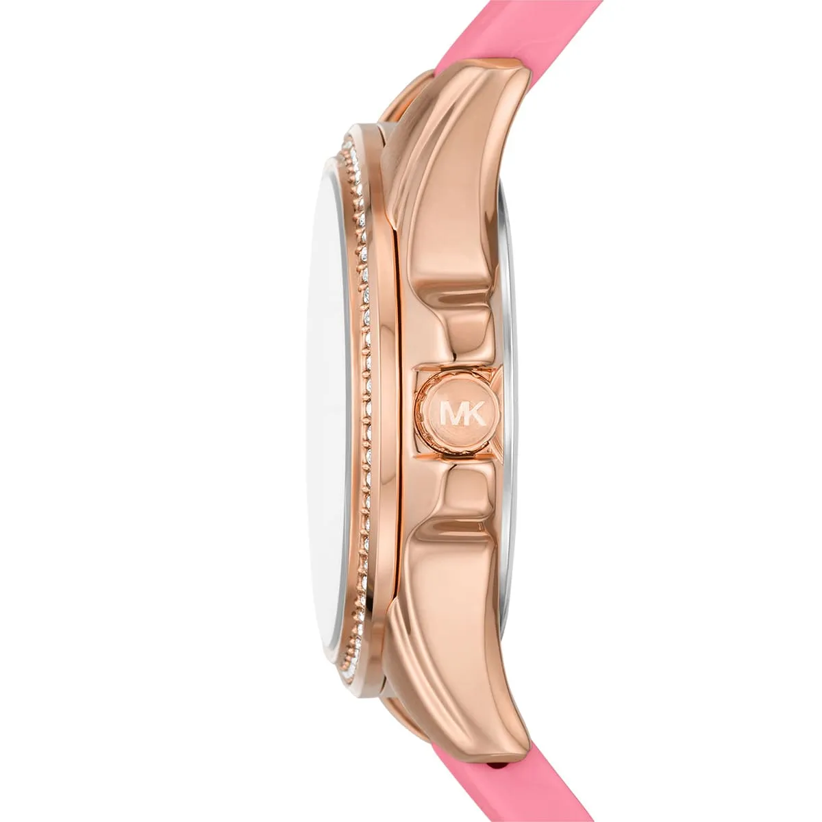 Štýlové dámske hodinky Michael Kors MK7375 si zamilujú všetky dámy, ktoré vyhľadávajú kvalitne spracované doplnky. Vo vnútri odolného, 10 mm vysokého púzdra, ktoré tvorí kvalitná oceľ nájdete spoľahlivý batériový (quartz) strojček poháňajúci v priemere 36 mm široký ciferník. Ten spoľahlivo chráni odolné minerálne sklíčko. Ako sami vidíte, púzdro zahalila ružovozlatá, ciferník ružovozlatá a remienok ružová farba. Z hľadiska materiálu vedie silikón a jeho dĺžku, v tomto prípade 200 mm si môžete ľahko upraviť na obvod svojho zápästia. Ciferník je zasadený vo výraznom puzdre, ktoré je lemované jemnými krištálikmi. Tieto hodinky disponujú stupňom vodotesnosti 5 ATM.